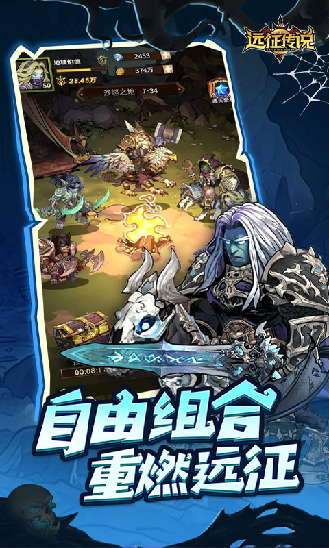 《远征传说》是一款竖版策略卡牌游戏,游戏以多种族架空大陆为背景开发的2d复古风格的即时战斗卡牌游戏,游戏内含多位知名英雄,并对其进行技能的原汁原味还原,同时有多个魔兽,神兵,符文套装与传奇饰品,玩家将收集这些强大的宝物,与传奇首领进行战斗,进行一段宏大的策略冒险。