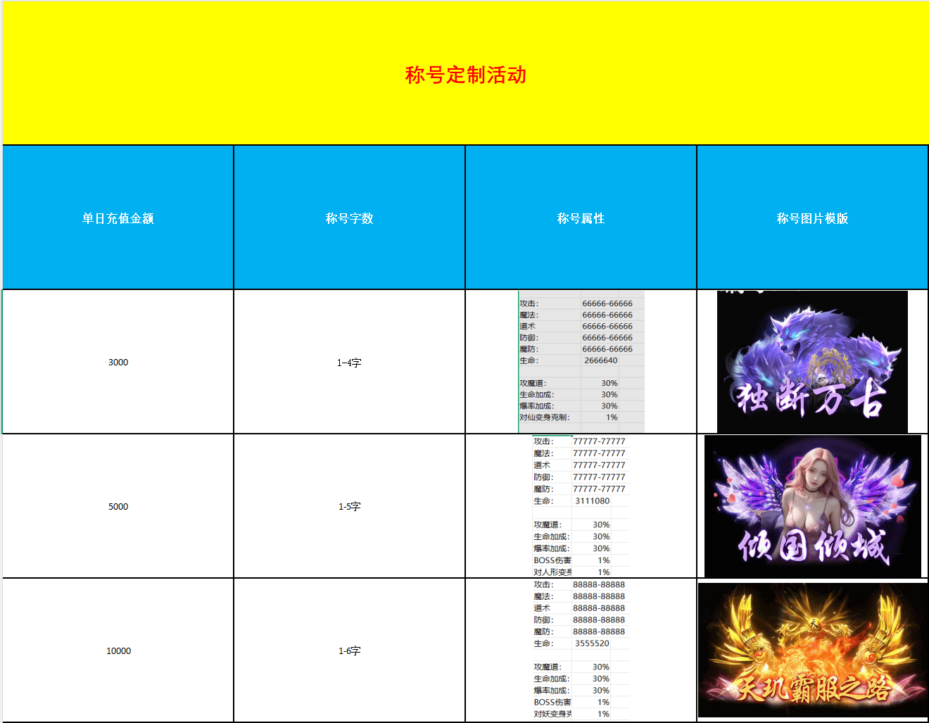 称号定制活动