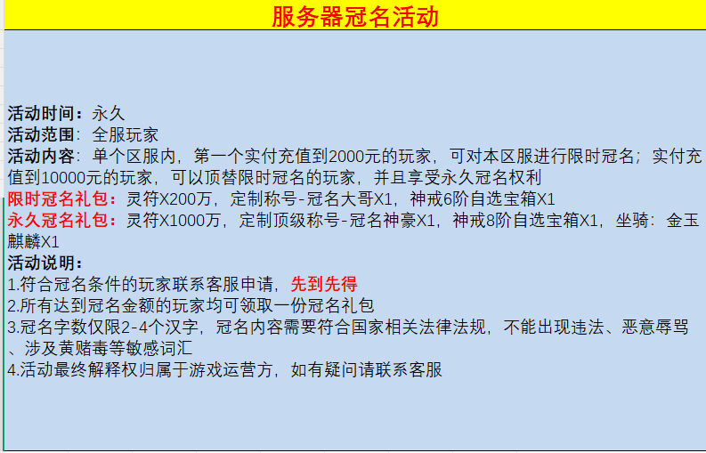 服务器冠名活动
